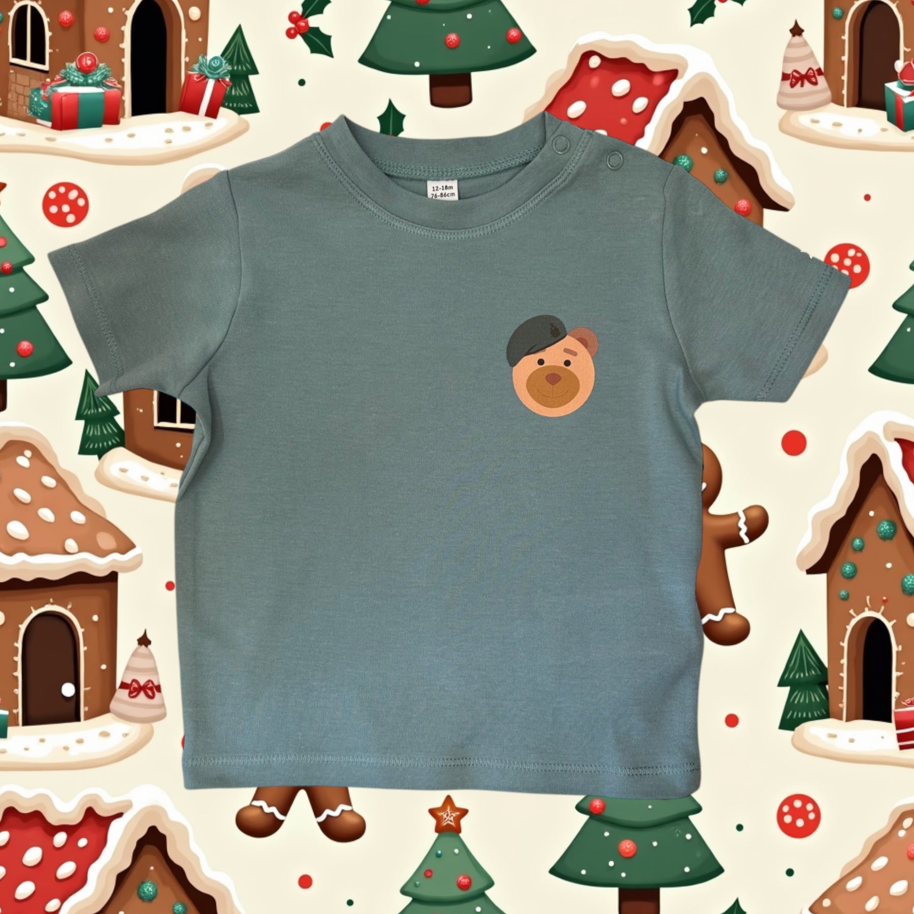 Cute baby/toddler sage green t-shirt featuring our RM Booty Bear print to the left chest and printed Mini Marine on the back.