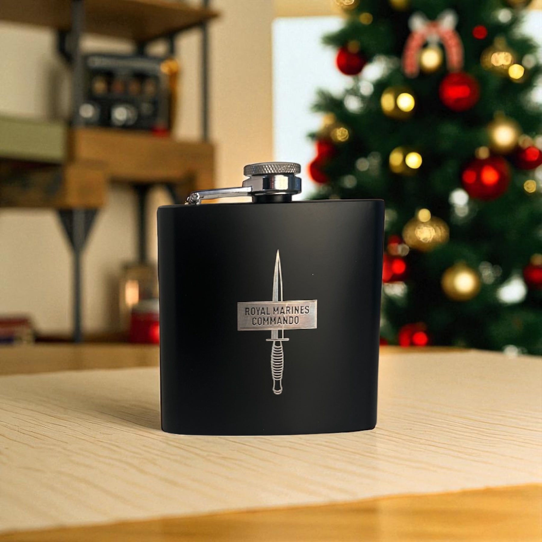 A 6oz Dagger & Flash hip flask in a fantastic black finish. Made out of tough stainless steel featuring a captive steel lid.