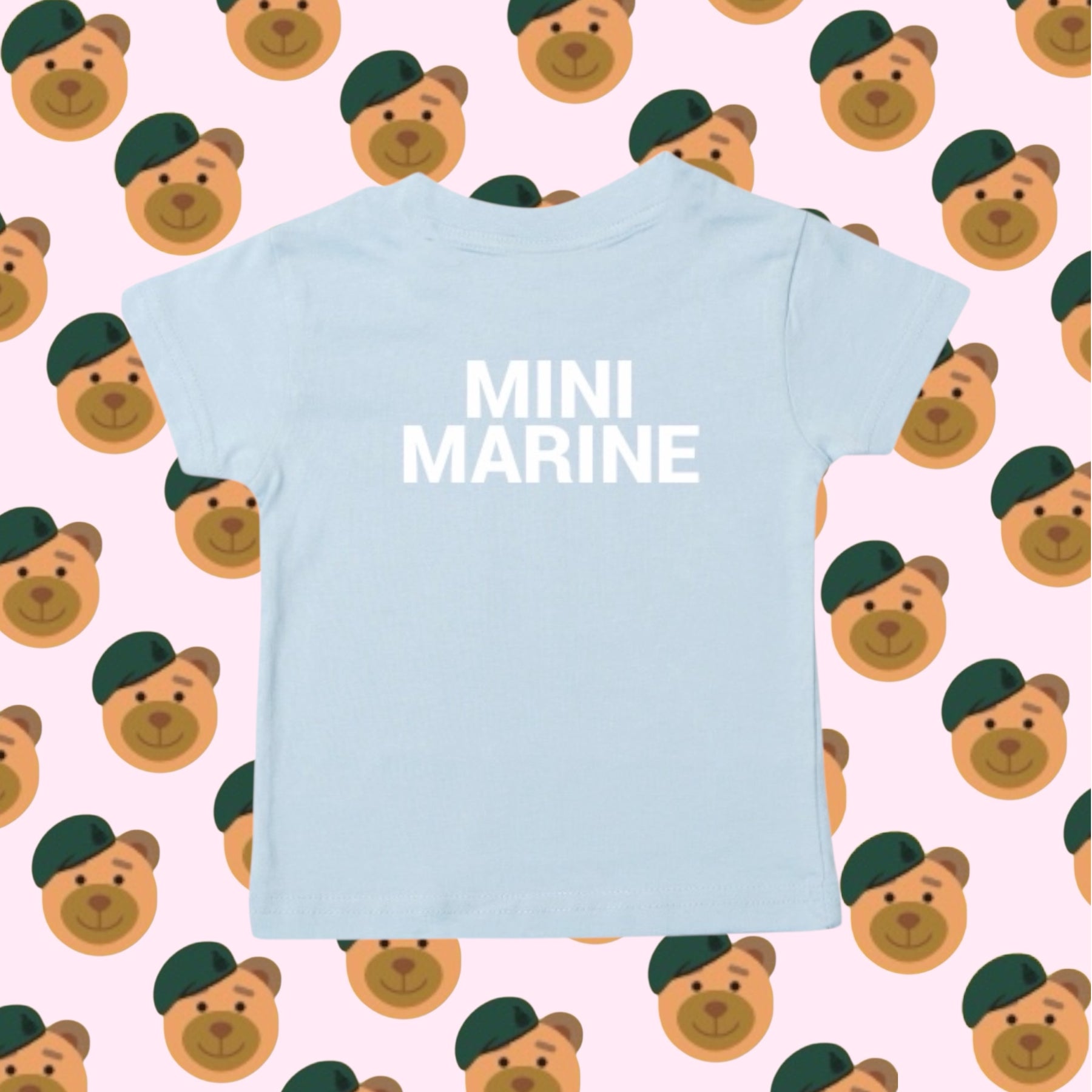 Cute baby/toddler t-shirt made from 100% cotton, featuring our RM Booty Bear print to the left chest and printed Mini Marine on the back.